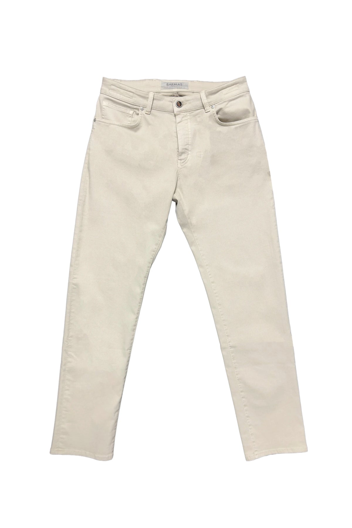 These Barmas jeans are made in Italy from soft cotton twill with a hint of stretch for comfort. Cut in a slim, modern fit, they feature a classic five-pocket design and clean, minimal detailing. The light neutral tone makes them easy to style year-round — perfect with everything from linen shirts to knitwear.