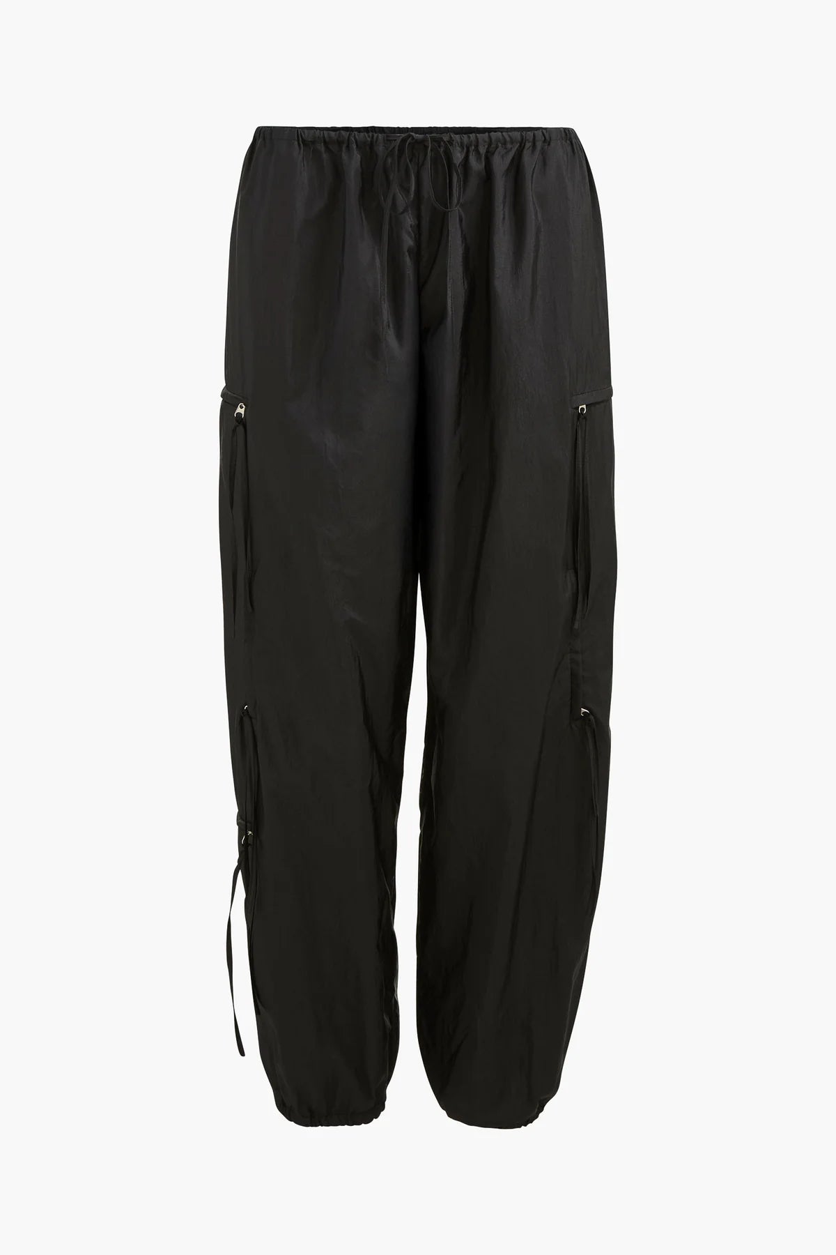 A relaxed cargo pant reimagined in fluid technical silk, blending utility with a polished finish. The easy silhouette is shaped with elastic at the waist and ankles, while the subtle sheen adds a refined edge. Effortless yet directional, they bring modern versatility to everyday dressing.