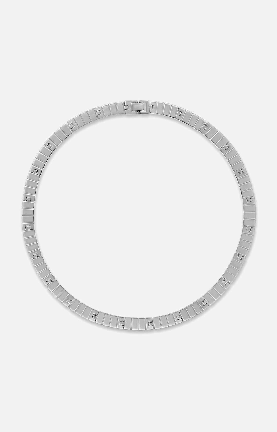 An IVI icon, the rhodium-plated Slot chain necklace is luxuriously crafted to become one with the wearer. This versatile piece can be styled with the ribs facing up or down, and the custom clasp positioned at the front or back. 925 Sterling Silver. Plated in Rhodium.