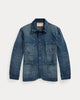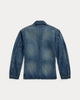 Lightweight jacket made with 8 oz. Japanese cotton-and-linen denim. Medium-indigo wash and details based on 1930s workwear. Vintage-inspired fit with dropped shoulders and a slightly tapered waist. Sanforized® to minimize shrinkage.